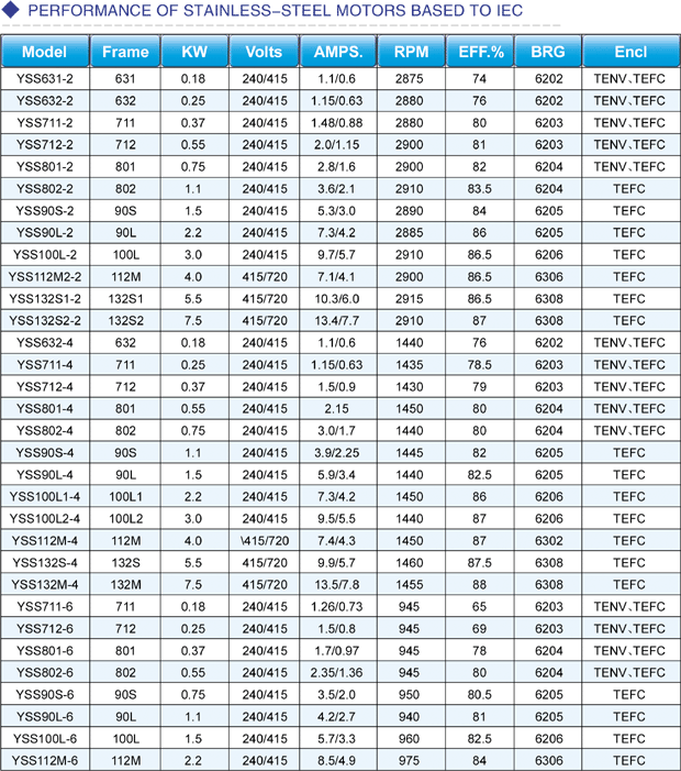 • IECstandard stainless steel motor