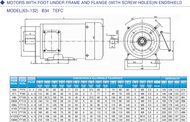 This series of motor with CSA,CE certificate is the enclosed three-phase squirrel-cage asynchronous motor. Its electric function and installation dimension all conform to the relative standards of IEC-60034. It uses F level insulation and B level temperature rising examination and its efficiency exceeds IE1 of IEC 60034-30 (IE2 or EEF1 availabe upon requirement) .
